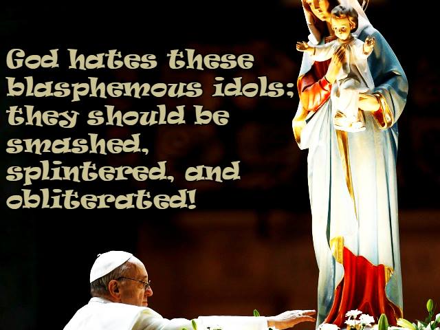 What does God want people to do with these graven images? But thus shall ye deal with them; ye shall destroy their altars, and break down their images, and cut down their groves, and burn their graven images with fire. Deut. 7:5 Thy graven images also will I cut off, and thy standing images out … Continue reading Praying to Mary, Having Mary Idols, and Bowing to Them Is An Abomination To God