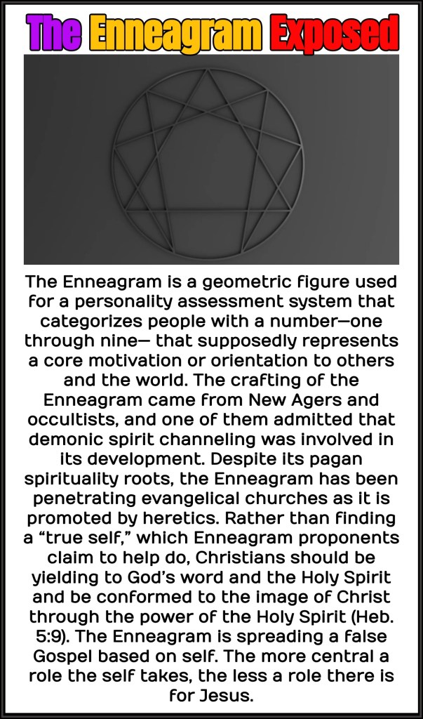 It shouldn’t take much discernment to see that the Enneagram stems from the demonic world and thus Christians should have nothing to do with it. Even if you dismiss the case for it being demonic, it’s still problematic because the Enneagram leads people to focus more on the self when we ought to decrease while Jesus should increase in our lives (Jn 3:30), and this is not done by analyzing personality (and the Enneagram has been shown to be invalid for that) but by the Spirit working through God’s word.