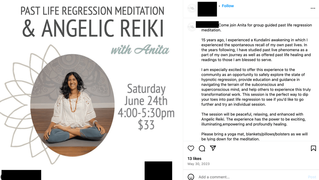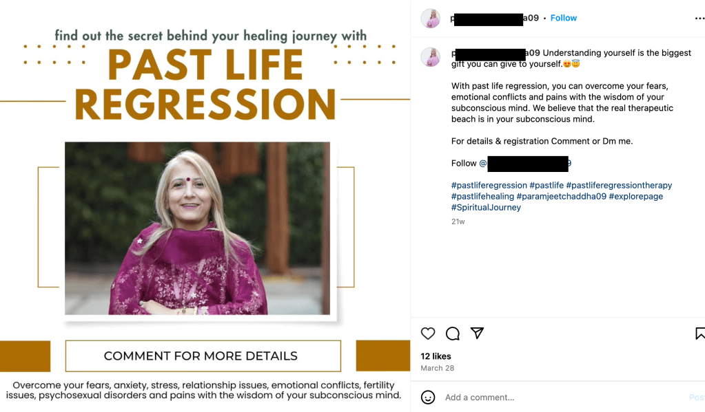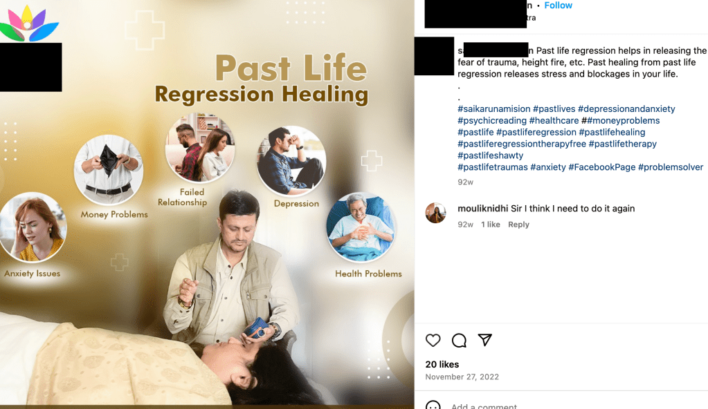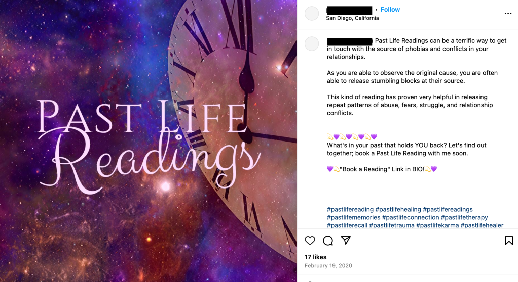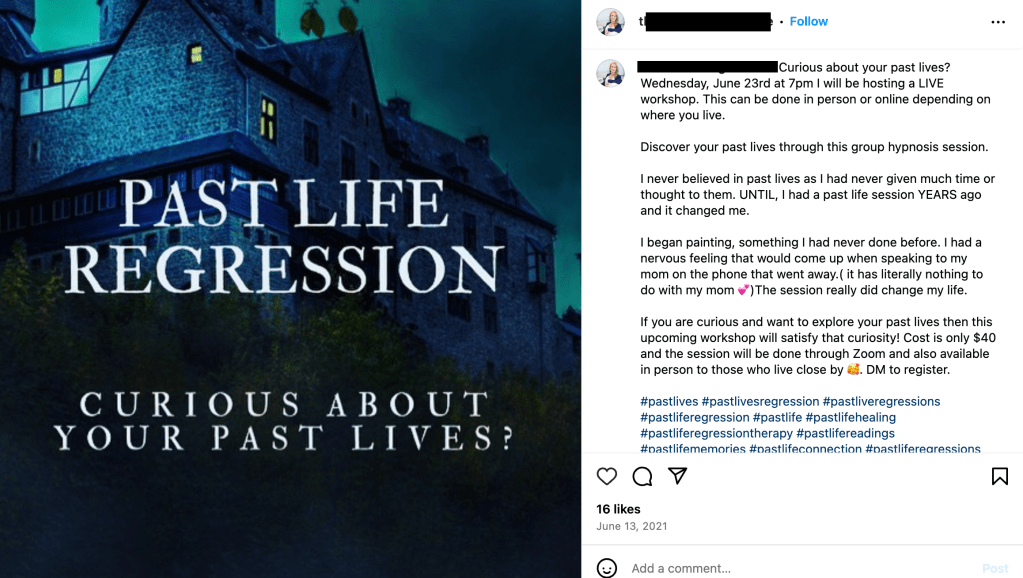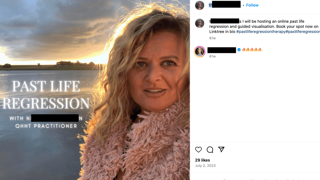 On Instagram, there are many posts where people promote such therapy, touting its supposed benefits. Some claim it can help with self-discovery, overcome fears, anxiety, stress, relationship issues, emotional conflicts, fertility issues, and emotional issues, and can heal traumas. Unsurprisingly, those involved with such practices seem to also engage in other New Age/occult practices that have been exposed here to be demonic door openers such as kundalini awakening, (angelic) reiki, spiritual guides, guided visualization, psychic readings, shamanism, and tarot, etc.